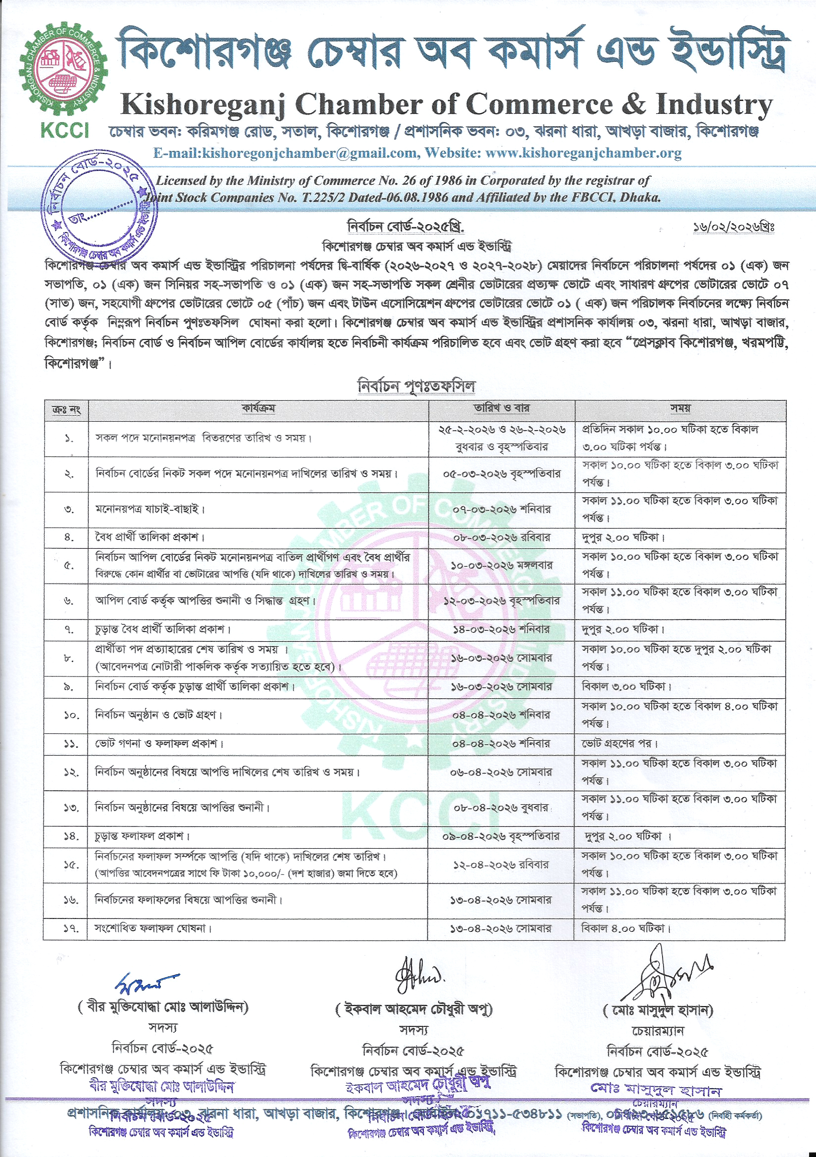 Kishoreganj Chamber Election Notice for term of 2024-2025 and 2025-2026